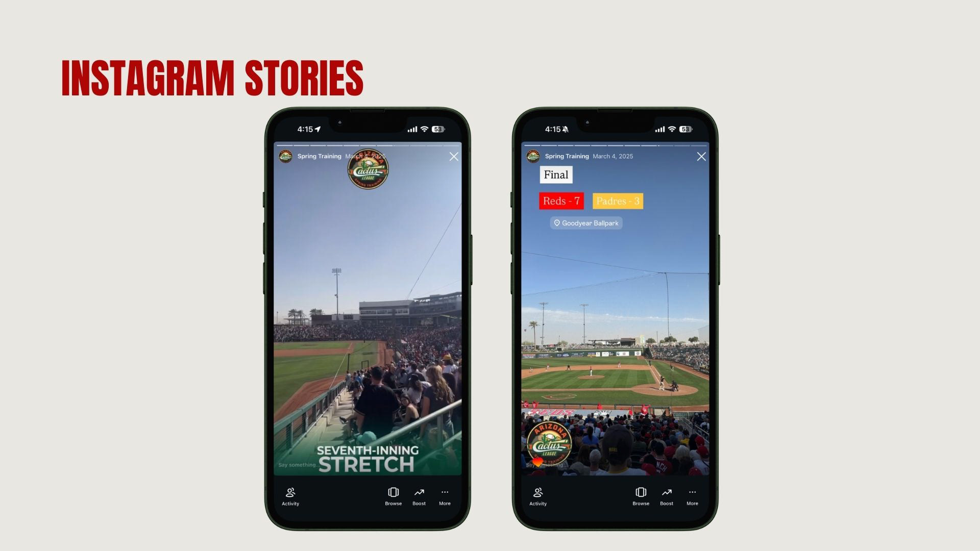 Instagram Stories Coverage for Cactus League